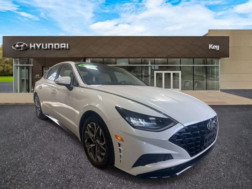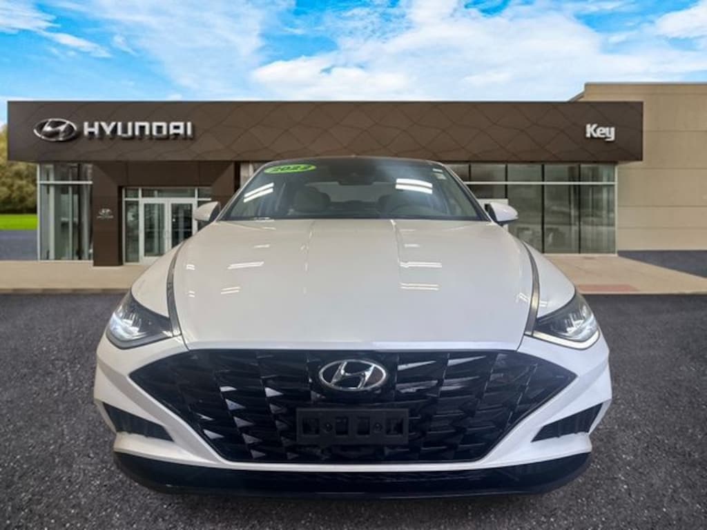 Android Auto, Apple Carplay, Backup Camera, Blind Spot Detection, Bluetooth, Convenience Package, Heated Seats, Lane Departure Warning, Lane Keep Assist, Gray Cloth, 12.3" LCD Instrument Cluster, 17" x 7.0J Aluminum Alloy Wheels, 2nd Row Air Vent, 2nd Row USB Charge Port, 4-Wheel Disc Brakes, 6 Speakers, ABS brakes, Active Cruise Control, Air Conditioning, Alloy wheels, AM/FM radio: SiriusXM, Apple CarPlay & Android Auto, Auto High-beam Headlights, Auto-Dimming Rear-View Mirror, Brake assist, Bumpers: body-color, Cargo Block, Cargo Net, Carpeted Floor Mats, Convenience Package, Delay-off headlights, Driver door bin, Driver vanity mirror, Dual front impact airbags, Dual front side impact airbags, Electronic Stability Control, Emergency communication system: Blue Link Connected Car Service (3-year complimentary subscription), Exterior Parking Camera Rear, First Aid Kit, Four wheel independent suspension, Front anti-roll bar, Front Bucket Seats, Front Center Armrest, Front dual zone A/C, Front reading lights, Fully automatic headlights, Heated door mirrors, Heated Front Bucket Seats, Heated front seats, Hyundai Digital Key, Illuminated entry, Knee airbag, Leather-Wrapped Steering Wheel, LED Interior Lights, Low tire pressure warning, Occupant sensing airbag, Option Group 02, Outside temperature display, Overhead airbag, Overhead console, Panic alarm, Panoramic Sunroof, Passenger door bin, Passenger vanity mirror, Power door mirrors, Power driver seat, Power steering, Power windows, Preferred Accessory Package, Premium Cloth Seating Surfaces, Radio data system, Radio: AM/FM/MP3/HD/SiriusXM Display Audio, Rear anti-roll bar, Rear seat center armrest, Rear side impact airbag, Rear window defroster, Remote keyless entry, Reversible Cargo Tray, Security system, Speed control, Speed-sensing steering, Speed-Sensitive Wipers, Split folding rear seat, Steering wheel mounted audio controls, Tachometer, Telescoping steering wheel, Tilt steering wheel, Traction control, Trip computer, Turn signal indicator mirrors, Variably intermittent wipers, Wireless Device Charging. Certified. Quartz White 2022 Hyundai Sonata SEL FWD 8-Speed Automatic with SHIFTRONIC 2.5L I4
