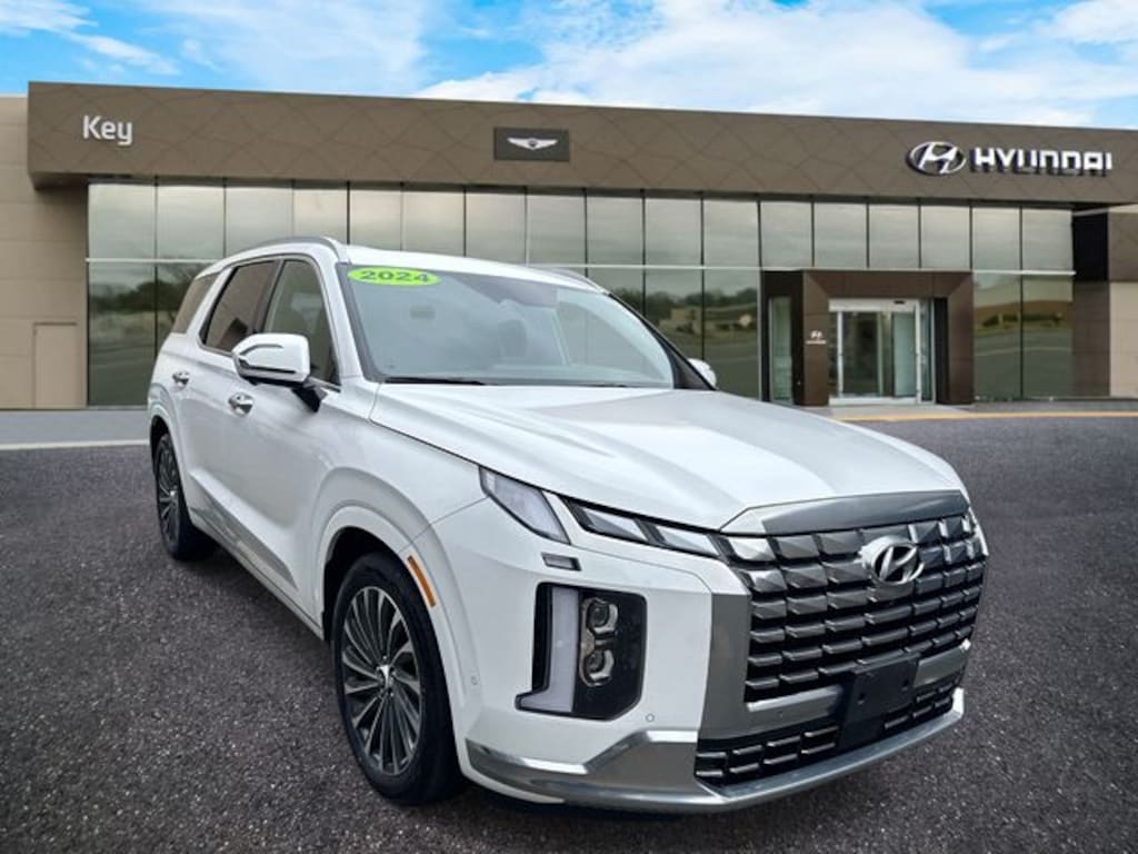Fresh Oil Change. CARFAX One-Owner. Certified. Hyper White 2024 Hyundai Palisade Calligraphy AWD 8-Speed Automatic with SHIFTRONIC V6