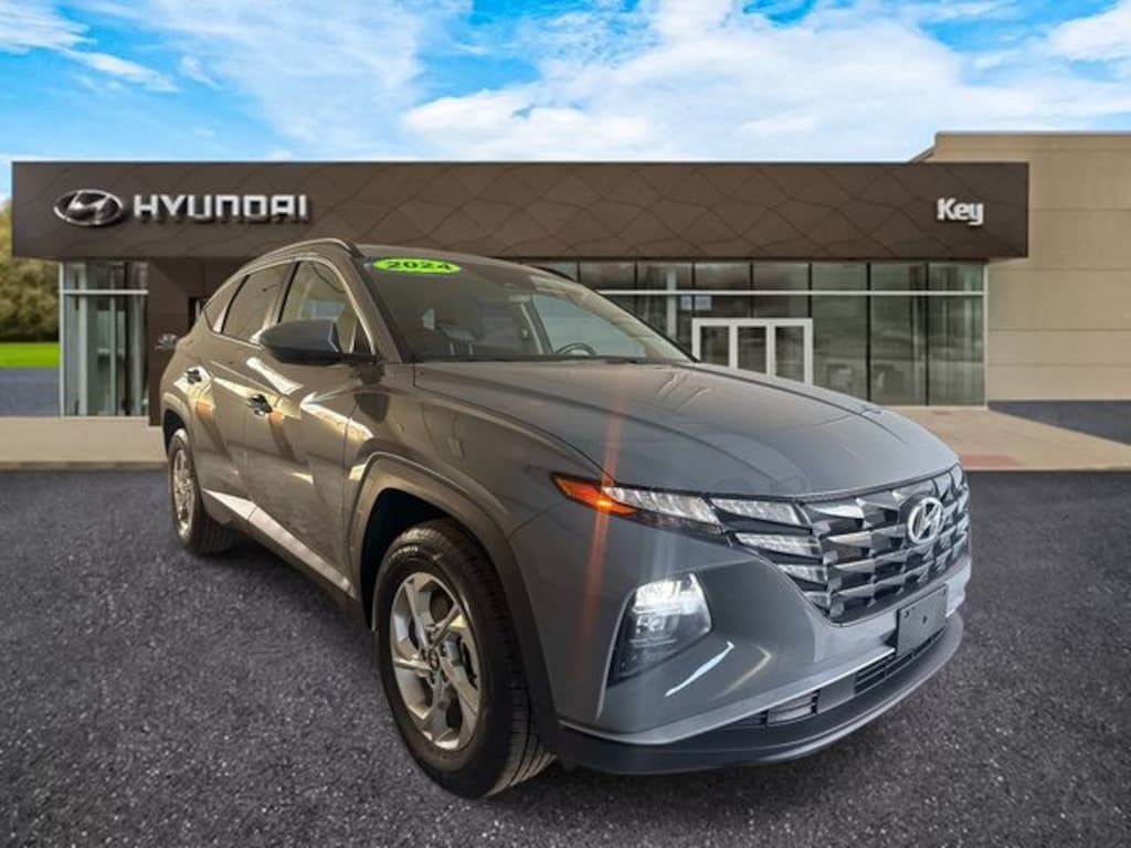 AWD, 3.648 Axle Ratio, 4-Wheel Disc Brakes, 6 Speakers, ABS brakes, Air Conditioning, Alloy wheels, AM/FM radio: SiriusXM, Apple CarPlay & Android Auto, Auto High-beam Headlights, Automatic temperature control, Brake assist, Bumpers: body-color, Delay-off headlights, Driver door bin, Driver vanity mirror, Dual front impact airbags, Dual front side impact airbags, Electronic Stability Control, Exterior Parking Camera Rear, Four wheel independent suspension, Front anti-roll bar, Front Bucket Seats, Front Center Armrest, Front dual zone A/C, Front reading lights, Fully automatic headlights, Heated door mirrors, Heated Front Bucket Seats, Heated front seats, Illuminated entry, Low tire pressure warning, Occupant sensing airbag, Option Group 01, Outside temperature display, Overhead airbag, Overhead console, Panic alarm, Passenger door bin, Passenger vanity mirror, Power door mirrors, Power driver seat, Power Liftgate, Power steering, Power windows, Radio data system, Radio: AM/FM/HD Audio System, Rear anti-roll bar, Rear seat center armrest, Rear side impact airbag, Rear window defroster, Rear window wiper, Remote keyless entry, Roof rack, Security system, Speed control, Split folding rear seat, Spoiler, Stain & Odor Resistant Cloth Seat Trim, Steering wheel mounted audio controls, Tachometer, Telescoping steering wheel, Tilt steering wheel, Traction control, Trip computer, Variably intermittent wipers. Certified. Hampton Gray 2024 Hyundai Tucson SEL AWD 8-Speed Automatic with SHIFTRONIC 2.5L I4 DGI DOHC 16V LEV3-SULEV30 187hp