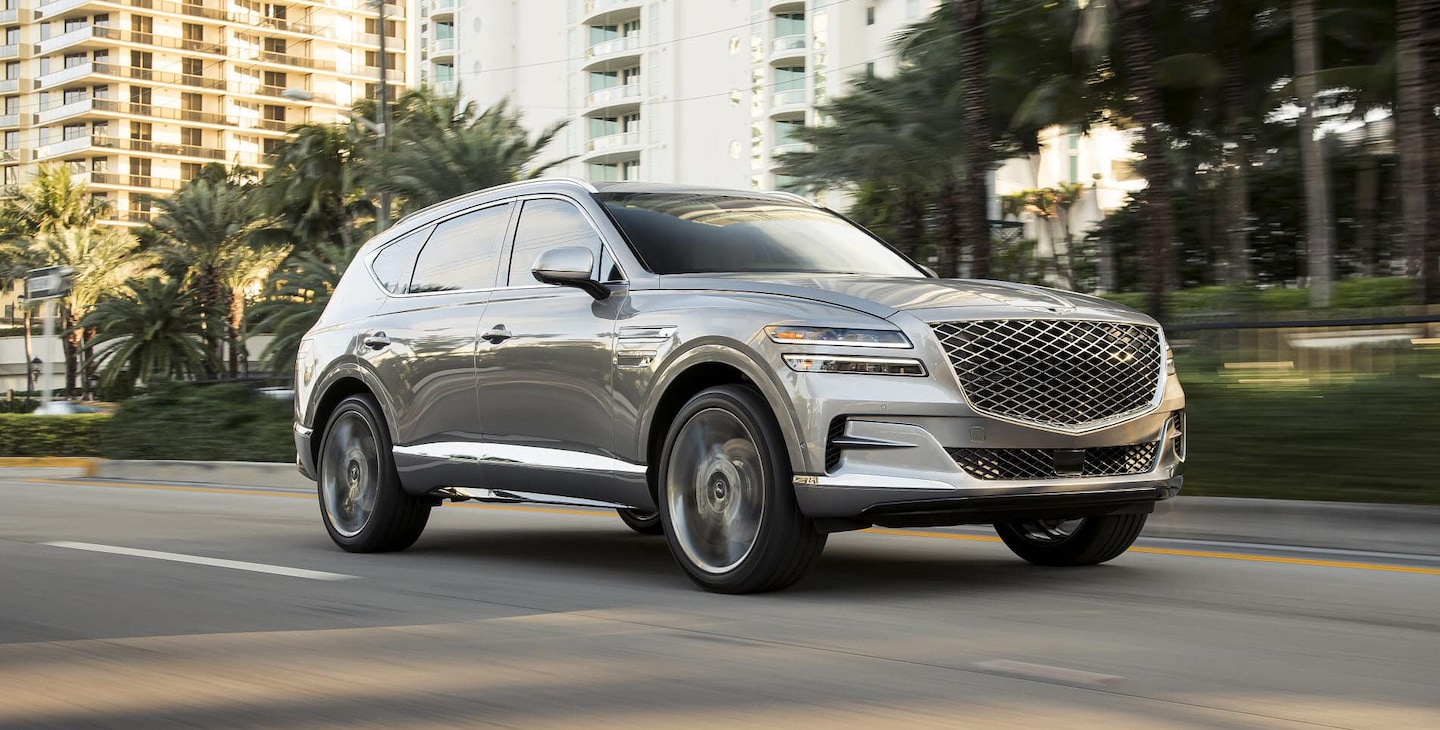 The Genesis GV80 is a stylish and capable luxury SUV that's a fierce competitor in a crowded class of midsize SUVs. In addition to its athletic design and impressive performance, the Genesis GV80 is filled with desirable features like intuitive technology and a digital gauge display, and luxury features like leather upholstery, ventilated seats, and road active noise cancellation.