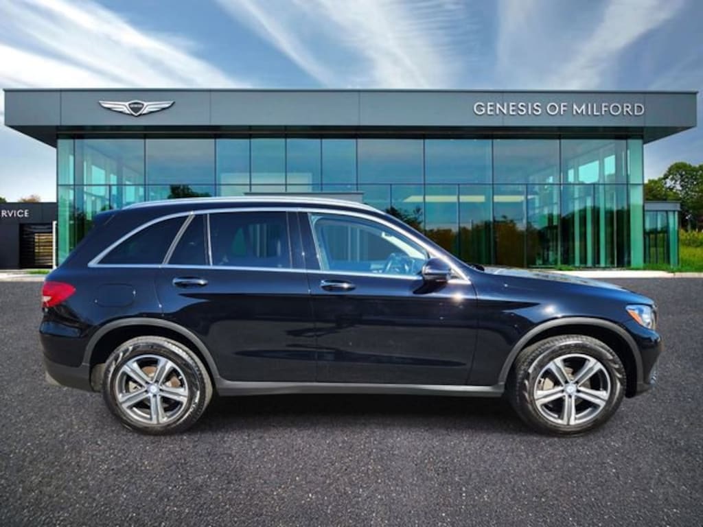 18 5-Spoke Alloy Wheels, 3.27 Axle Ratio, 4-Wheel Disc Brakes, 6 Speakers, ABS brakes, Air Conditioning, Alloy wheels, AM/FM radio, Anti-whiplash front head restraints, Auto tilt-away steering wheel, Auto-dimming door mirrors, Auto-dimming Rear-View mirror, Automatic temperature control, Brake assist, Bumpers: body-color, CD player, Child-Seat-Sensing Airbag, Delay-off headlights, Driver door bin, Driver vanity mirror, Dual front impact airbags, Dual front side impact airbags, Electronic Stability Control, Emergency communication system: mbrace, Exterior Parking Camera Rear, Four wheel independent suspension, Front anti-roll bar, Front Bucket Seats, Front Center Armrest, Front dual zone A/C, Front reading lights, Fully automatic headlights, Garage door transmitter: Homelink, Genuine wood console insert, Genuine wood dashboard insert, Genuine wood door panel insert, Heated door mirrors, Illuminated entry, Knee airbag, Leather steering wheel, Low tire pressure warning, MB-Tex Upholstery, Memory seat, Occupant sensing airbag, Outside temperature display, Overhead airbag, Overhead console, Panic alarm, Passenger door bin, Passenger vanity mirror, Power door mirrors, Power driver seat, Power Liftgate, Power passenger seat, Power steering, Power windows, Premium audio system: COMAND®, Radio data system, Radio: Audio 20 w/Single CD/DVD, Rain sensing wipers, Rear anti-roll bar, Rear fog lights, Rear reading lights, Rear seat center armrest, Rear window defroster, Rear window wiper, Remote keyless entry, Roof rack: rails only, Security system, Speed control, Speed-sensing steering, Split folding rear seat, Steering wheel memory, Steering wheel mounted audio controls, Tachometer, Telescoping steering wheel, Tilt steering wheel, Traction control, Trip computer, Turn signal indicator mirrors, Variably intermittent wipers, Weather band radio. Black 2017 Mercedes-Benz GLC GLC 300 4MATIC® 4MATIC® 9-Speed Automatic 2.0L Turbocharged